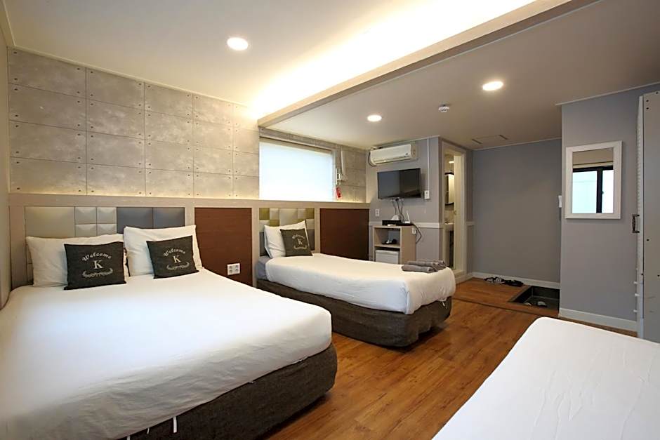 Offering free toiletries, this family room includes a private bathroom with a shower, a hairdryer and slippers. The family room offers air conditioning, soundproof walls, a wardrobe, an electric kettle and a flat-screen TV with satellite channels. The unit has 3 beds.